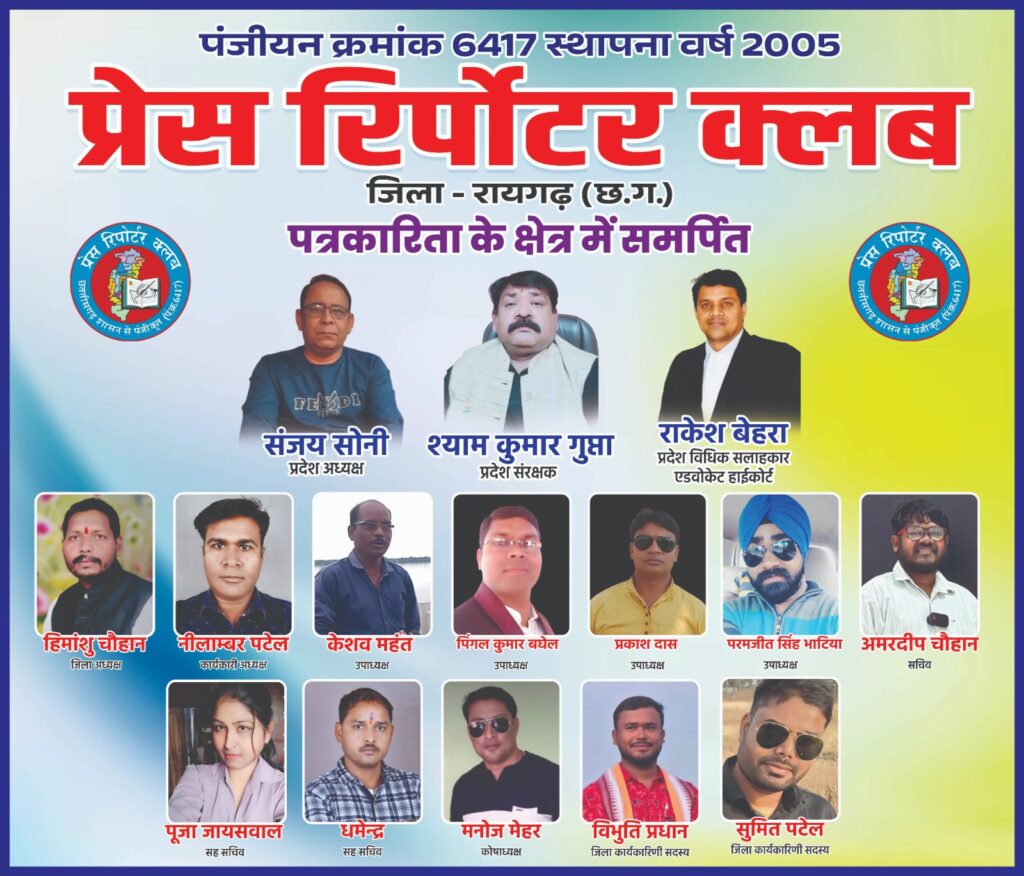 प्रेस रिपोर्टर क्लब परिवार की ओर से रायगढ़ जिला टीम को हार्दिक शुभकामनाएँ और बधाई दी गई है।