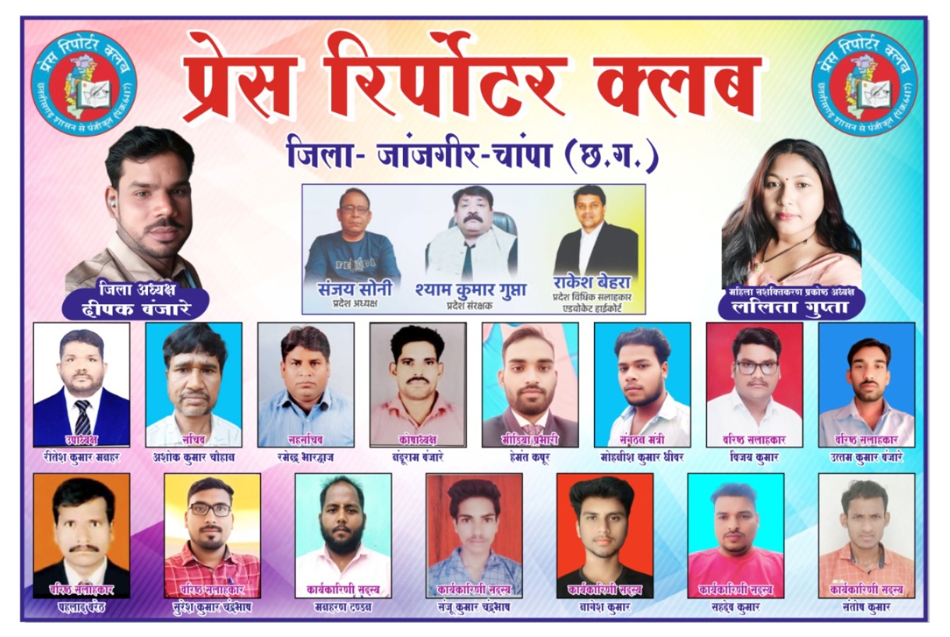 प्रेस रिपोर्टर क्लब, प्रदेश अध्यक्ष — संजय सोनी, संजोयक राजू सोनी, प्रदेश संगठन मंत्री शशि देवांगन (सनसनी) की तरह से सभी नया पदाधिकारीयों को हार्दिक बधाई एवं शुभकामनाएं