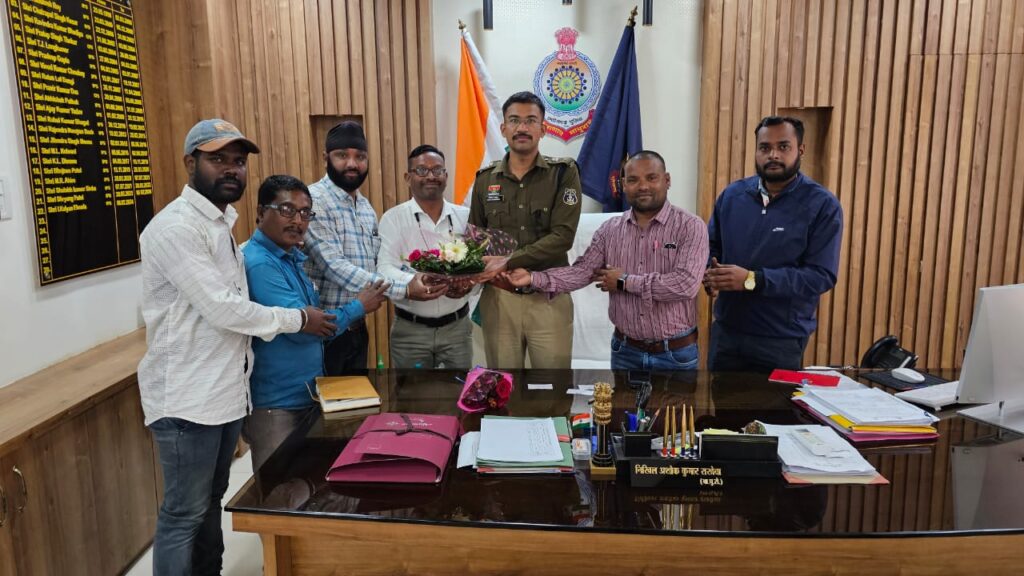 कांकेर।छत्तीसगढ़ प्रेस रिपोर्टर क्लब के अंतर्गत कांकेर प्रेस रिपोर्टर क्लब के सदस्यों ने जिले के नवनियुक्त पुलिस अधीक्षक निखिल अशोक कुमार रखेचा से सौजन्य मुलाकात कर पुष्पगुच्छ भेंट करते हुए उनका आत्मीय स्वागत किया। इस अवसर पर क्लब के सदस्यों ने उन्हें नई जिम्मेदारी के लिए हार्दिक शुभकामनाएं प्रेषित कीं।
