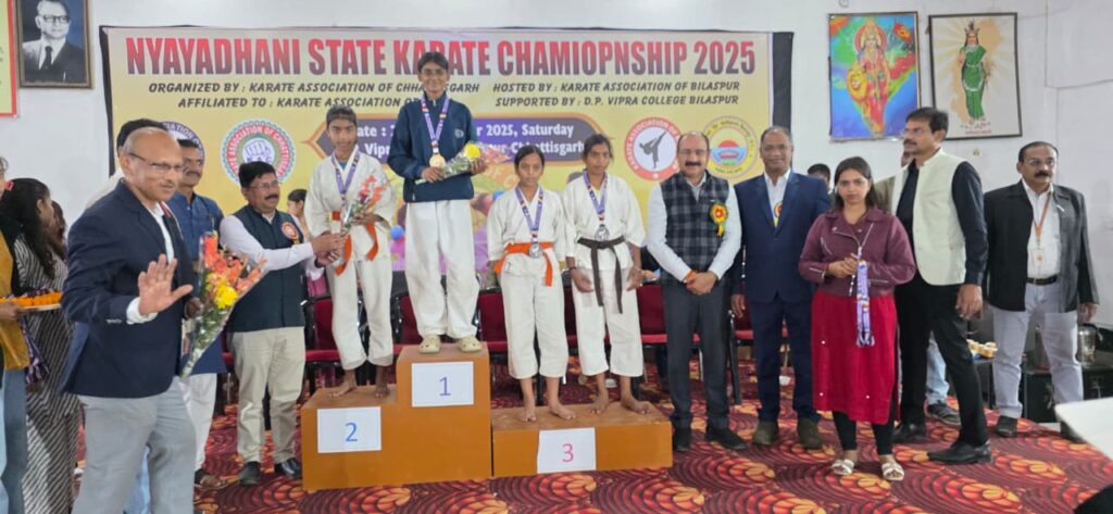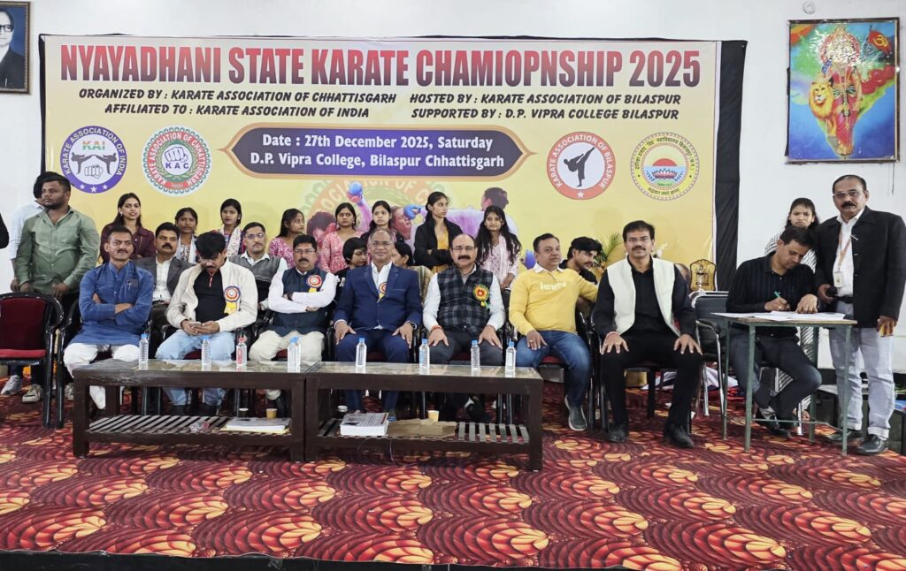 बिलासपुर। स्थानीय डी.पी. विप्र महाविद्यालय में 27 एवं 28 दिसंबर को दो दिवसीय राज्यस्तरीय कराते प्रतियोगिता का आयोजन कराते एसोसिएशन ऑफ इंडिया, बिलासपुर द्वारा किया गया। प्रतियोगिता में पूरे प्रदेश से 515 खिलाड़ी छात्र-छात्राओं ने सहभागिता की। यह प्रतियोगिता जूनियर, सब-जूनियर एवं सीनियर वर्गों में 5 वर्ष से 21 वर्ष एवं उससे अधिक आयु वर्ग के खिलाड़ियों के लिए आयोजित की गई।