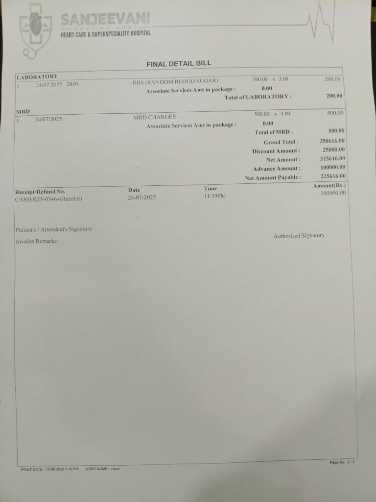 इलाज के दौरान ₹1,00,000 रुपये नगद जमा कराए गए