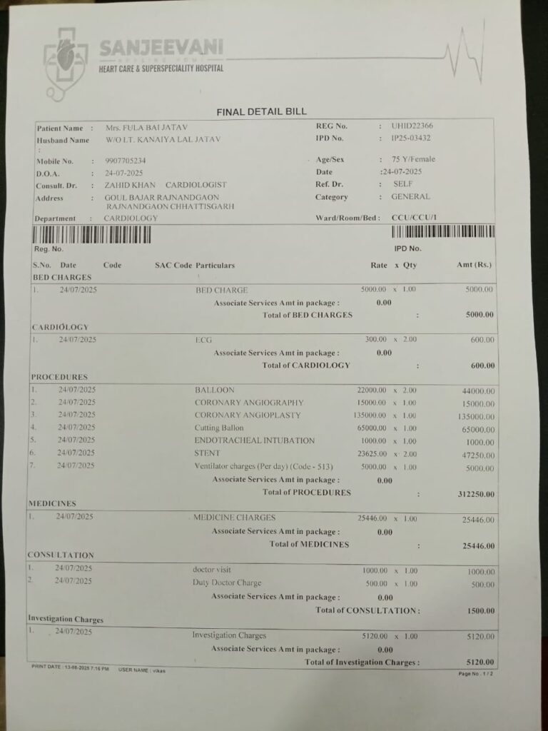 संस्कारधानी राजनांदगांव के संजीवनी हॉस्पिटल, चिकली से जुड़ा एक मामला सामने आया है, जिसमें आयुष्मान भारत योजना के अंतर्गत इलाज के बावजूद निजी राशि वसूली के आरोप लगाए गए हैं।