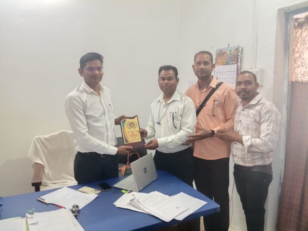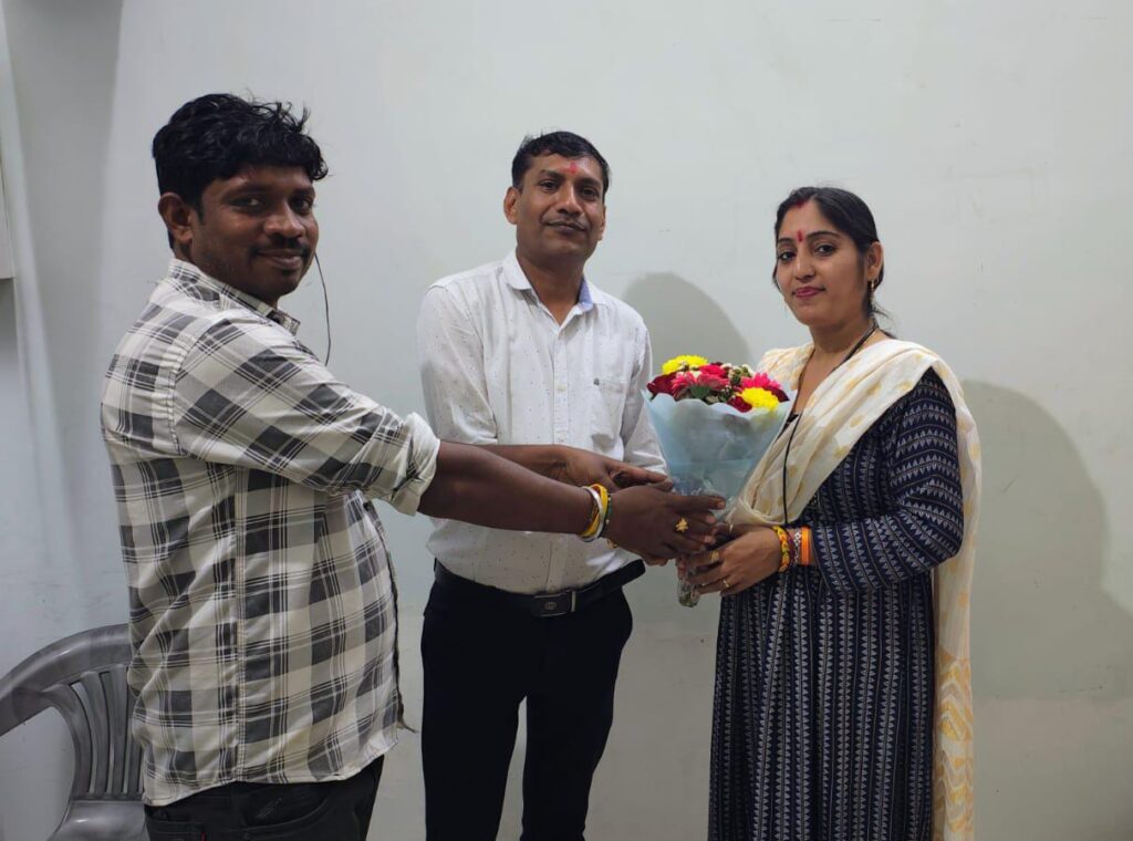 जिला अध्यक्ष विजय कुमार साहू के साथ सदस्य संतोष कुमार पटेल एवं भुवन लाल पटेल द्वारा नीलम सिंह पिस्दा को सम्मानित किया गया।