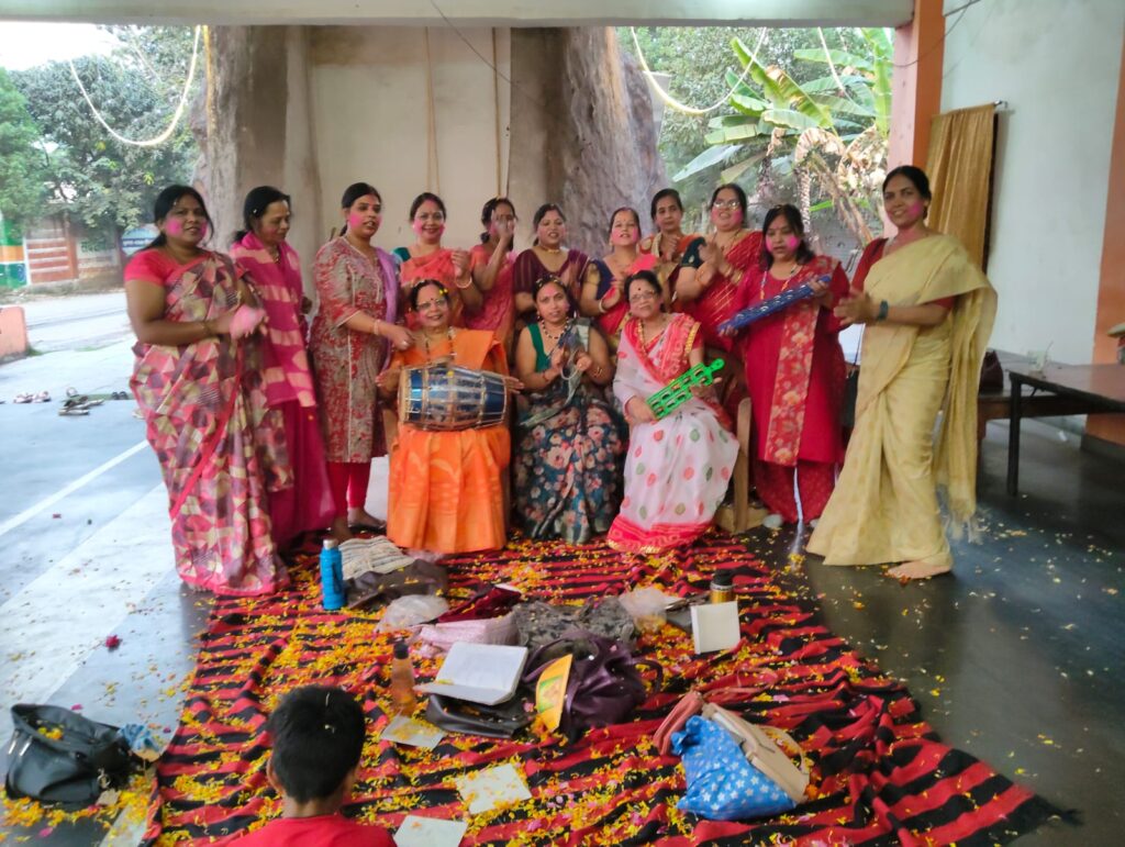 कार्यक्रम के दौरान समाज की महिलाओं ने फूलों की होली खेलकर आपसी प्रेम, सौहार्द और एकता का संदेश दिया। सभी बहनों ने एक-दूसरे को गुलाल लगाकर होली की शुभकामनाएं दीं तथा इस पावन अवसर का आनंद लेते हुए समाज में भाईचारा और सद्भाव बनाए रखने का संकल्प लिया। भक्ति, संगीत और रंगों के इस अद्भुत संगम से मंदिर परिसर में प्रेम और आनंद का वातावरण निर्मित हुआ।